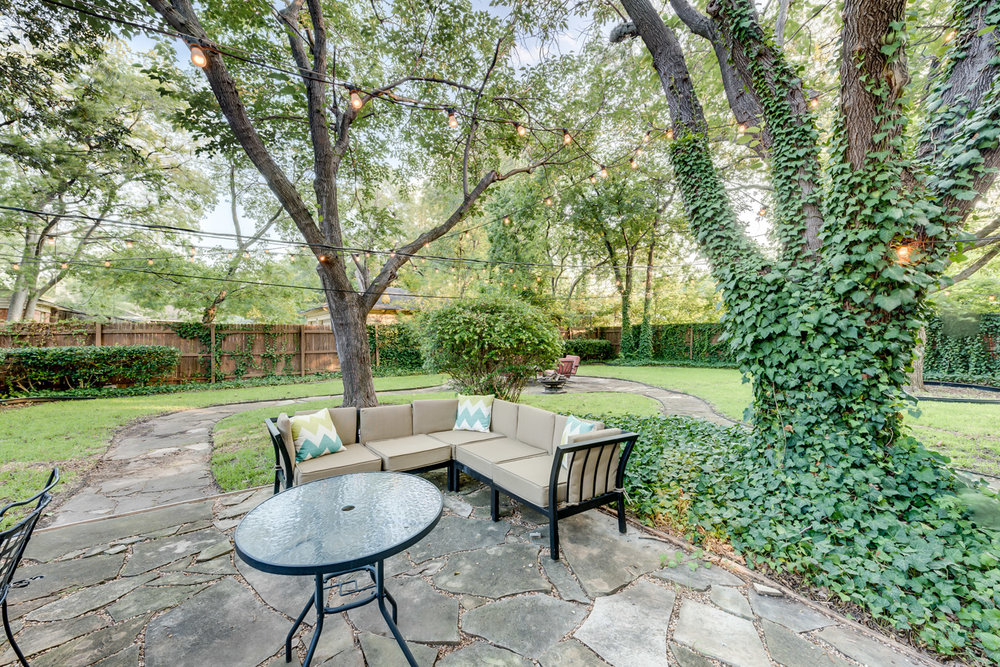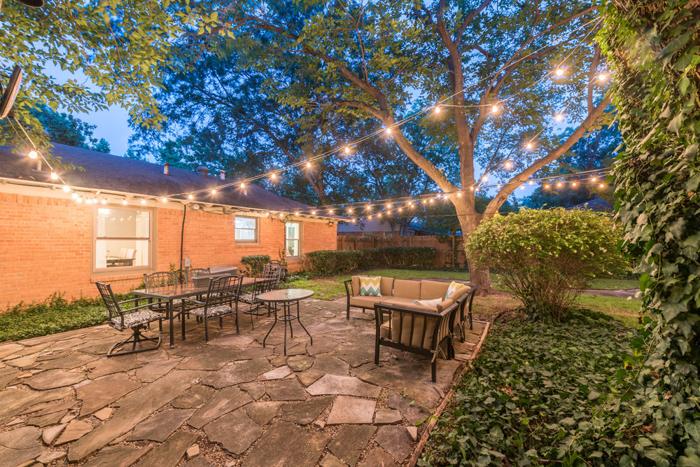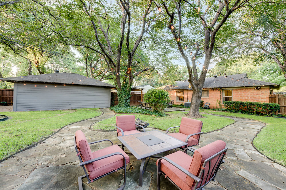 Highly desirable neighborhood within walking distance to White Rock Lake and Flag Pole Hill. Entertainers dream with the best backyard in East Dallas boasting two stone patios, mature trees, and patio lights strung across the entire yard! Charming, welcoming, and plenty of space, this home is perfectly efficient. 3 bedrooms with wood floor throughout and tile in wet areas. Several new, custom windows. Covered front porch. White kitchen! Oversized 2 car garage with sound-proof insulation (you could have a garage band!), sealed floor, overhead storage, and additional covered parking for 2 more cars outside. It’s priced to sell, don’t miss out!