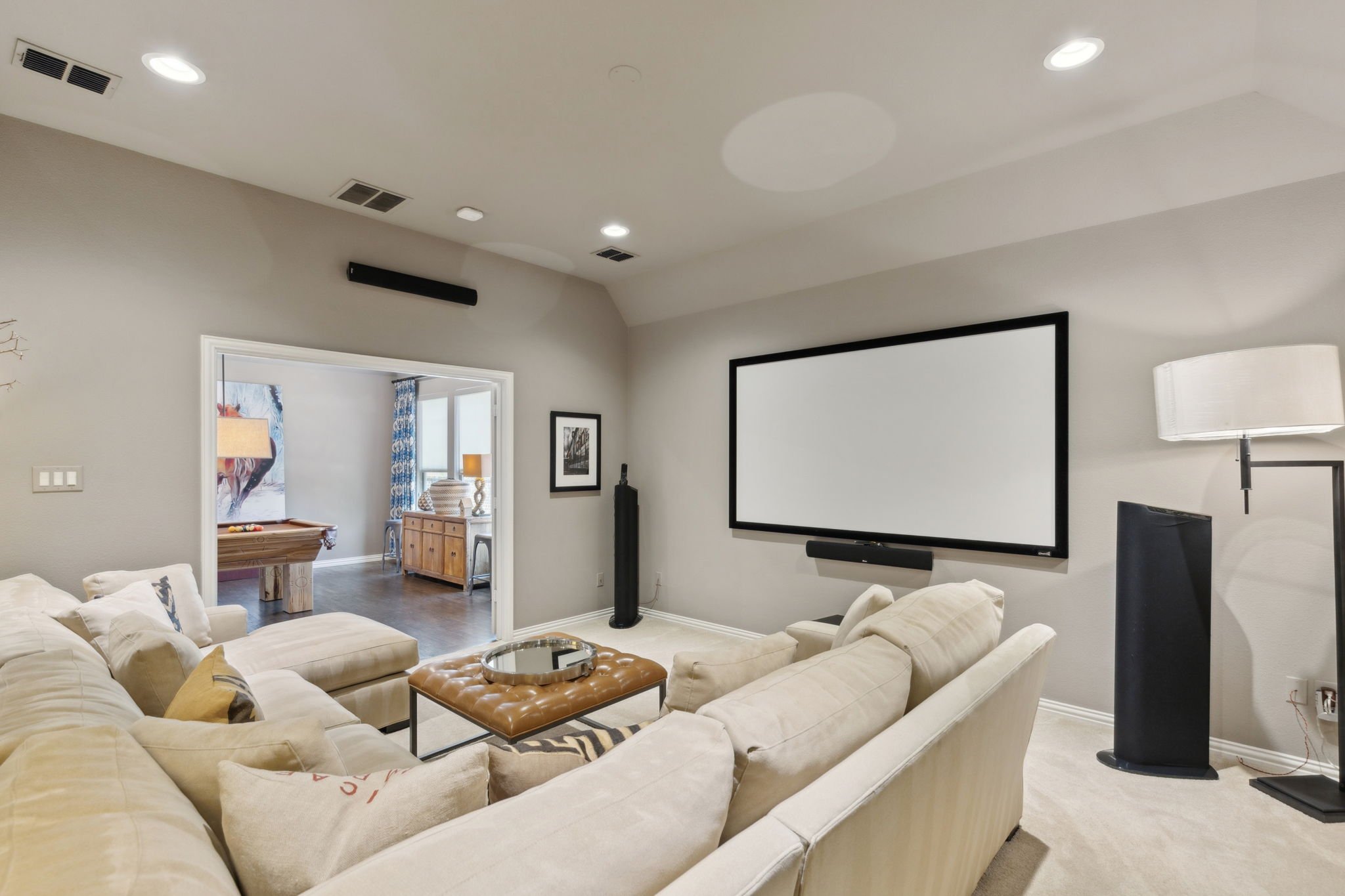 Tucked away on the main floor, the primary suite is your private sanctuary. Relax and unwind in the spa-inspired bath featuring dual vanities, a soaking tub, walk-in shower, and his and hers walk in closets. Upstairs, you’ll find a spacious game room, a media room perfect for movie nights, and additional bedrooms that offer privacy, comfort, and flexibility for guests, children, or a home office setup.