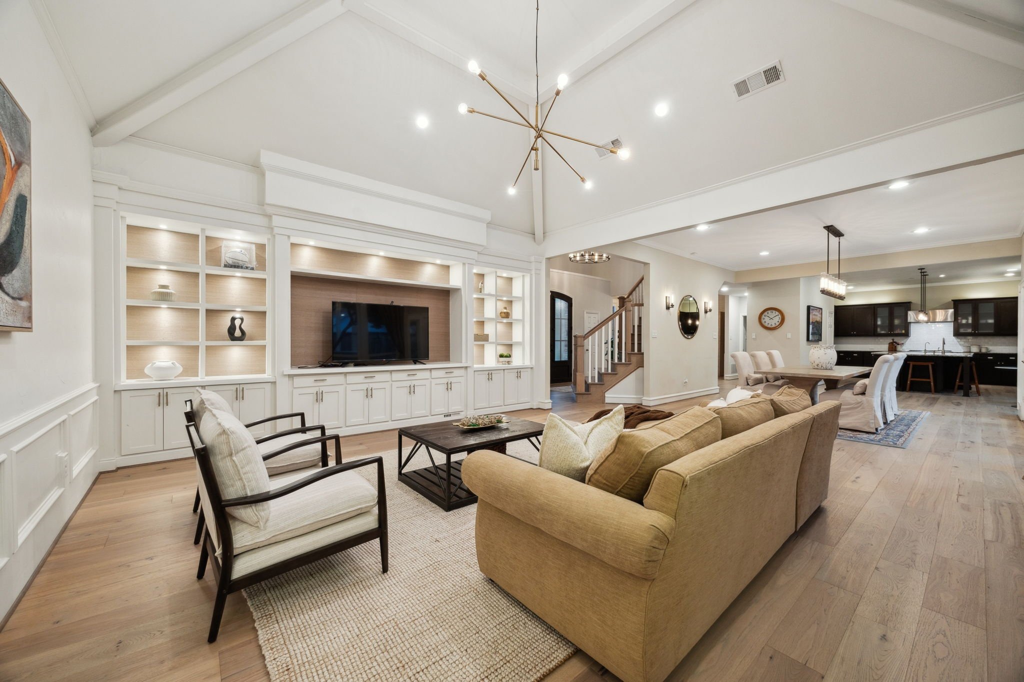 As you step through the grand entryway, you’ll be captivated by the expansive open floor plan, soaring ceilings, and an abundance of natural light that pours through oversized windows. The multiple living and entertaining areas are thoughtfully designed to create a perfect harmony of style and functionality.