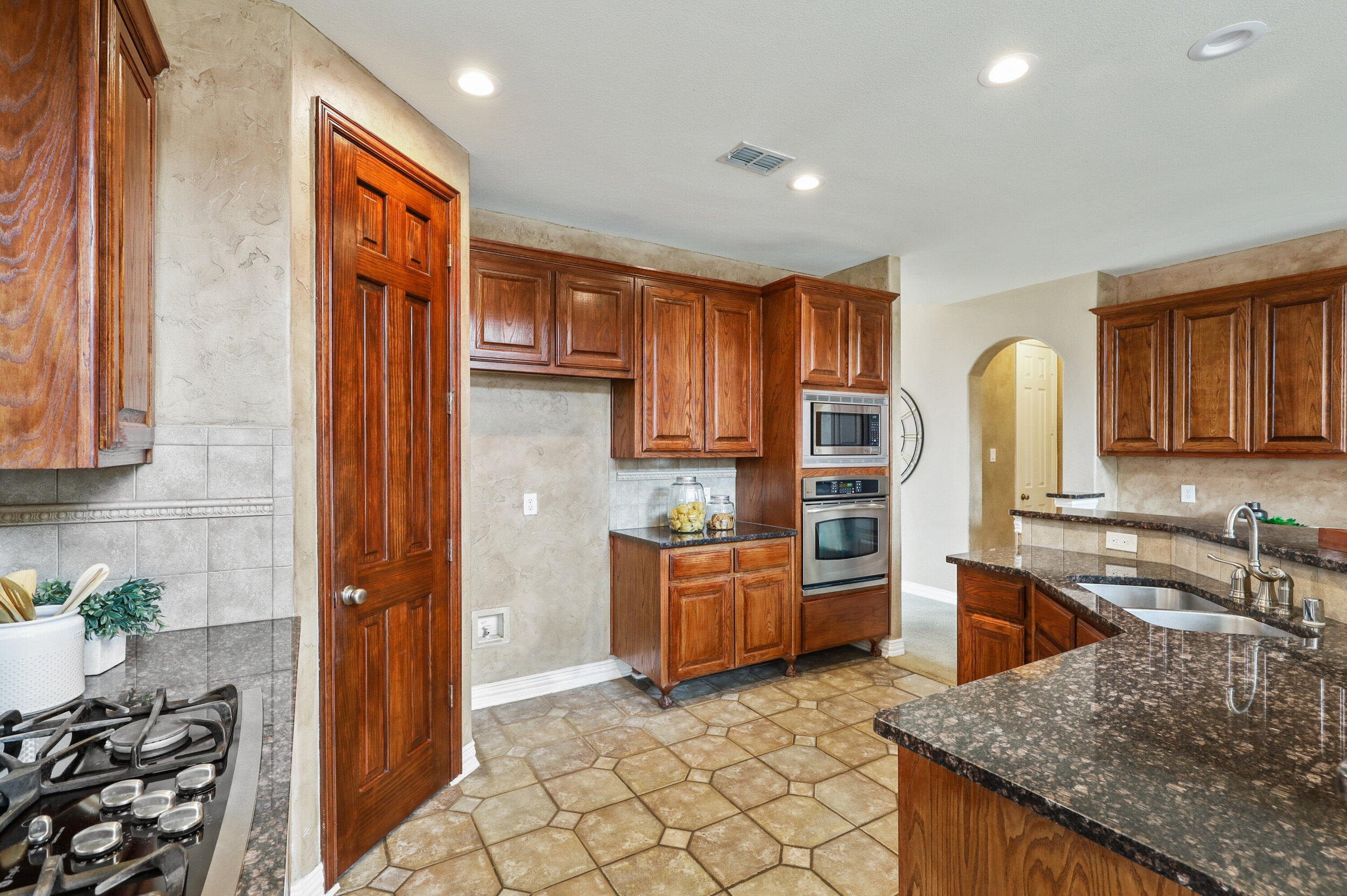 This home has it all! Small gated community with easy access to 190 and directly across the street from Breckenridge park! 5 bedrooms plus an office and/or media room. The entrance from the front door is impressive with high vaulted ceilings and large windows providing plenty of natural light. The primary bedroom is on the first floor, oversized with a large walk-in closet, dual sinks and vanities, large jetted tub and marble shower. Flex room near the garage entrance can be used as a media room or large office. Backyard is small enough for easy maintenance, but large enough for a play-set or small pool. Upstairs you’ll find 4 additional bedrooms, 3 full bathrooms. There is also a huge lofted game room plus a smaller raised space perfect for a playroom, or close off the walls to make this an office. Great schools K-8.