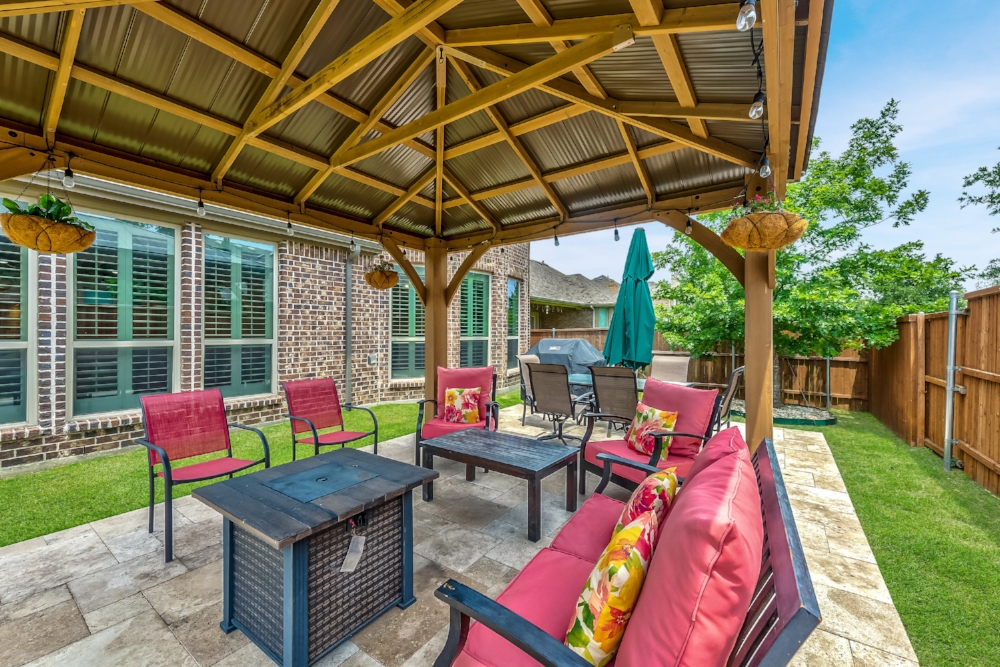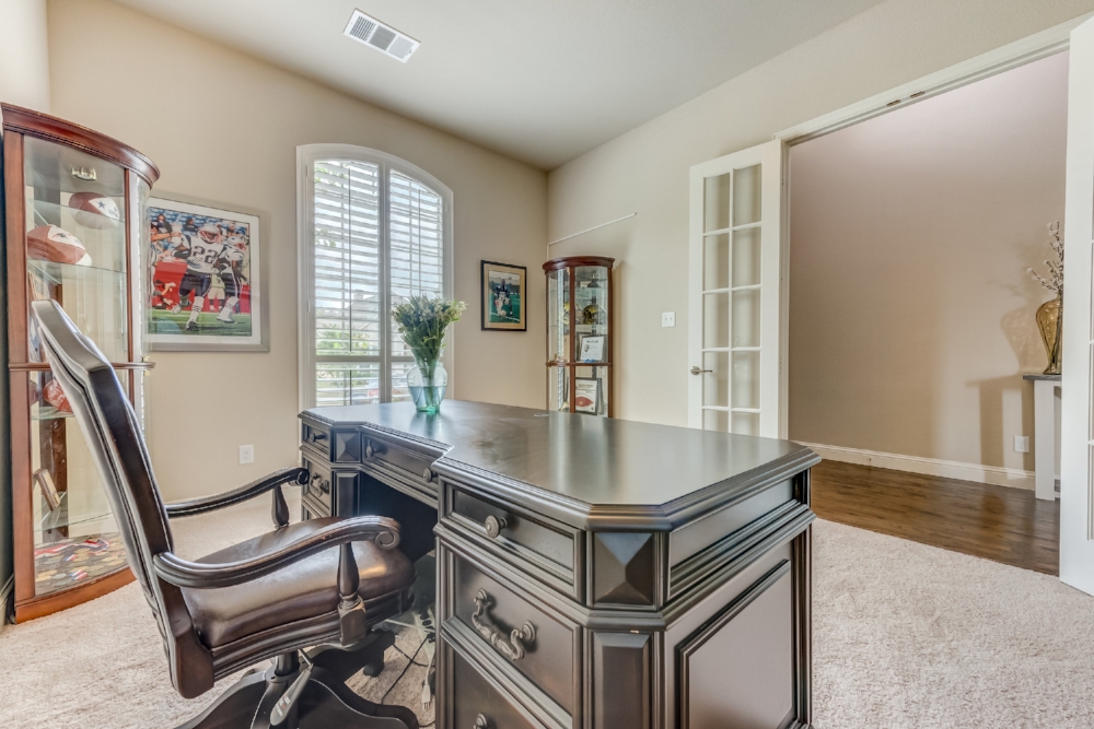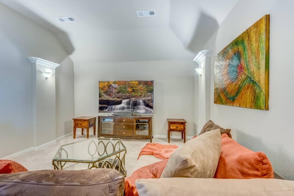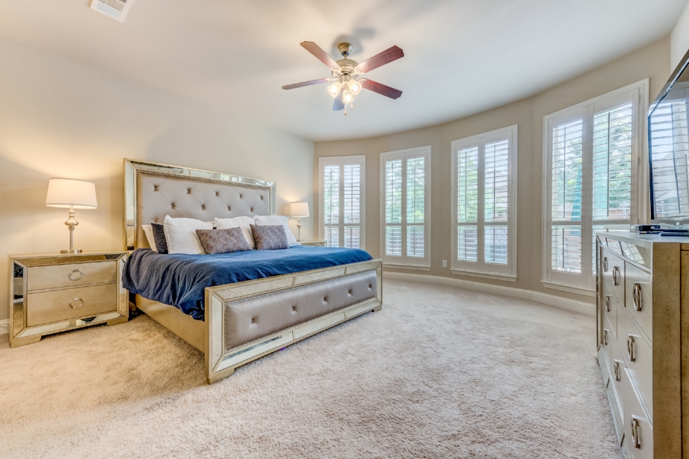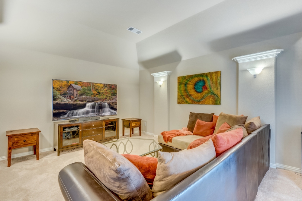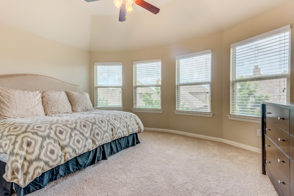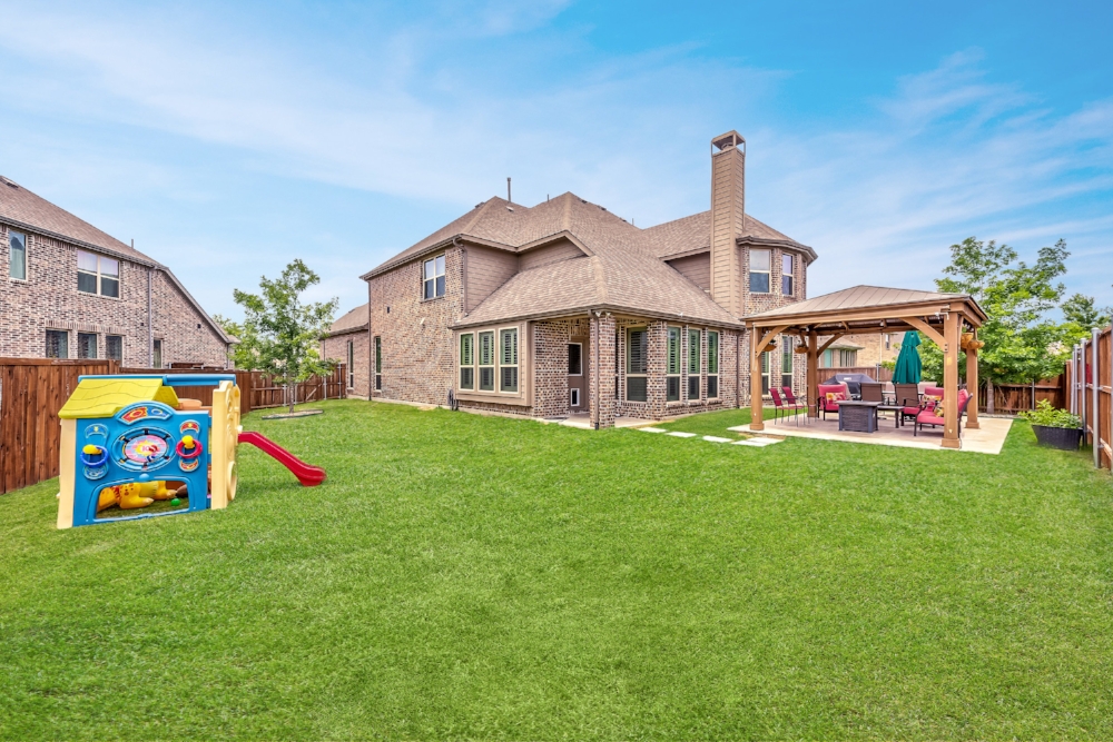 Gorgeous 2-story American Legend home built in 2015, priced well below new construction, with over $100k in upgrades. Open floor plan flooded with natural light, hand-scraped hardwoods, round statement staircase, and plantation shutters on main level. Kitchen includes granite counters, large island, and breakfast nook with built-in bench. Oversized study with glass french doors. Vaulted ceiling, fireplace, and an expansive wall of windows overlooking oversized back yard that includes covered entertainment space. Master suite features spa-like soaking tub, frameless glass shower. Master and guest bedroom down, 2 bedrooms up. Each bedroom has it’s own full bathroom. Oversized game room plus media room (wired for surround sound) upstairs. FRISCO ISD! NORTH FACING!