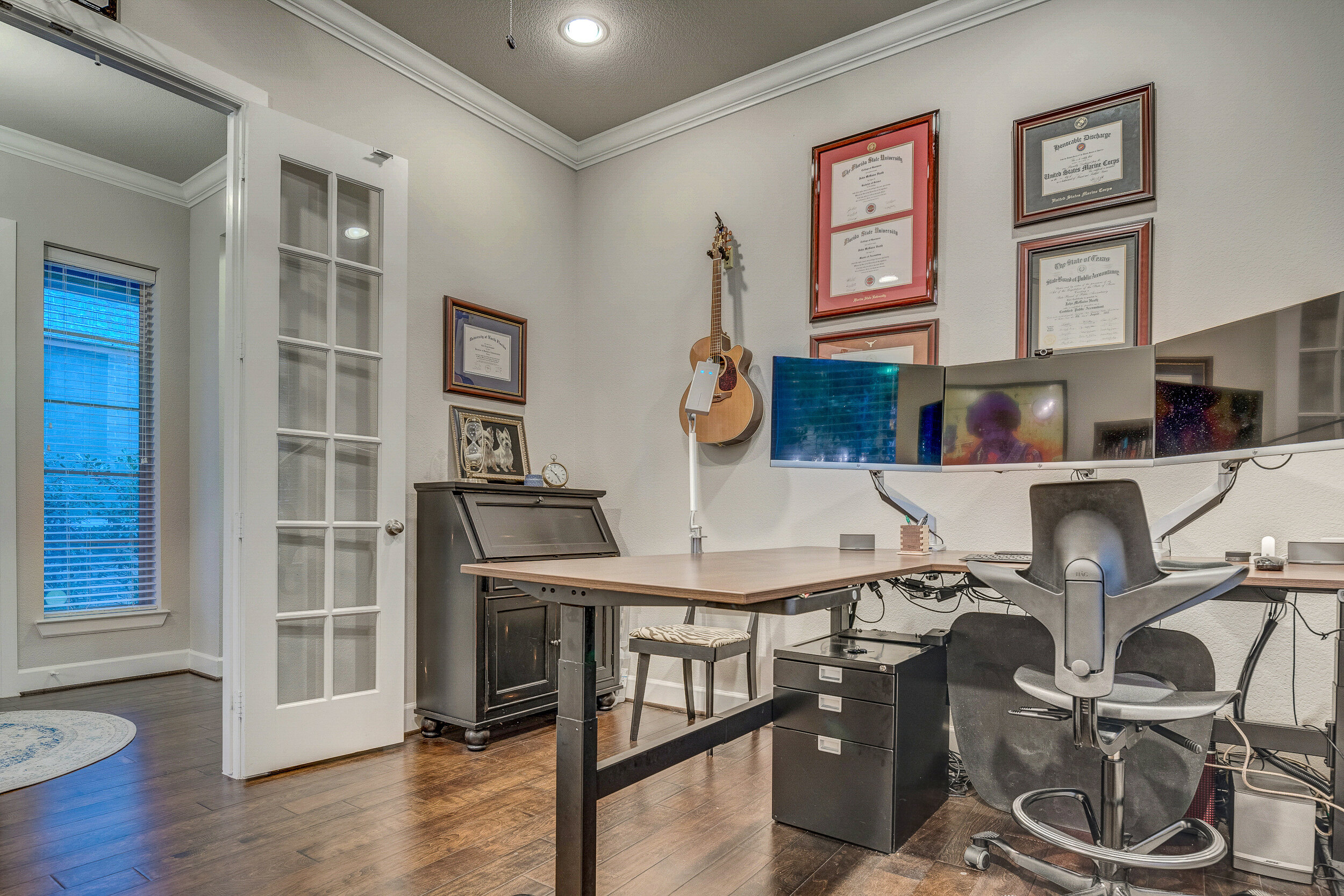This gorgeous David Weekley home is in a neighborhood perfect for both busy families and empty-nesters. You’ll find a healthy mix of both as neighbors. Built in 2016 with every detail in mind, this home has it all. The perfect open floor plan welcomes guests and flows nicely to the maintenance-free backyard deck. An office with french doors is tucked perfectly at the front of the home. Upstairs, the private owner’s retreat boasts plenty of natural light, a luxurious oversized bathroom, and a custom California Closet. There is more closet space than you ever knew you needed! Located within highly rated Lake Highlands Elementary zone, this gated community also has a swimming pool, fire pit, extra green space, and a dog park! You’ll be able to walk to White Rock Coffee, White Rock Lake, or Flag Pole Hill.