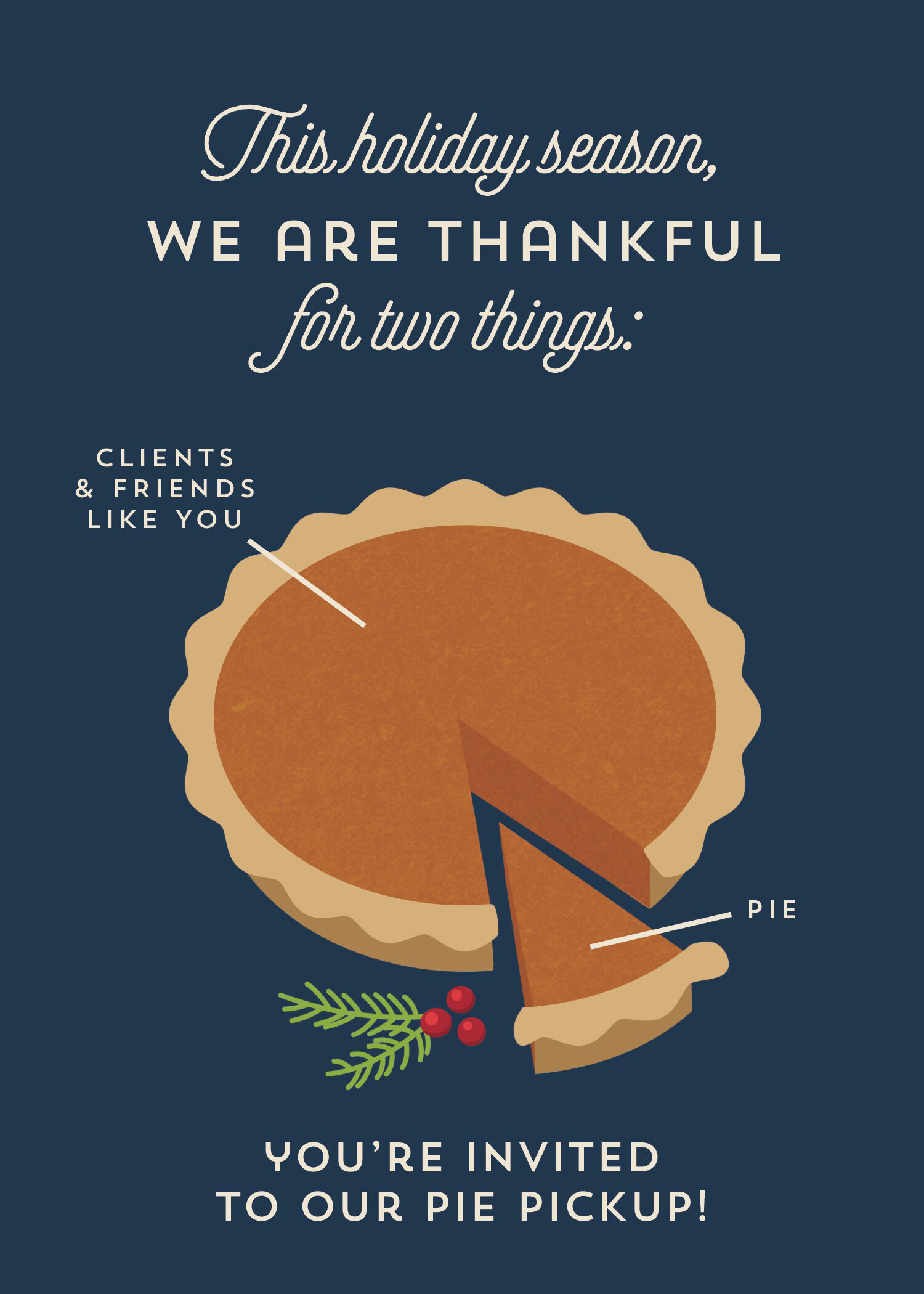 All pies will be individually packaged and baked in a commercial kitchen. You are welcome to maintain your distance or stay in your car, we just want to see you!